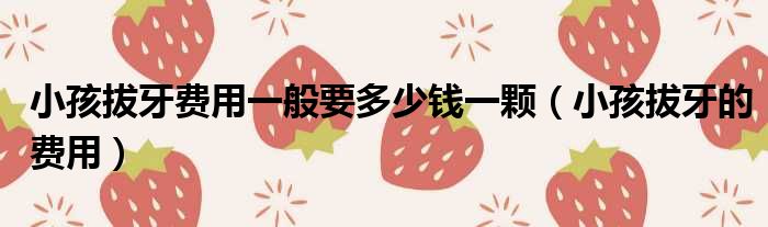 小孩拔牙费用一般要多少钱一颗(小孩拔牙的费用)