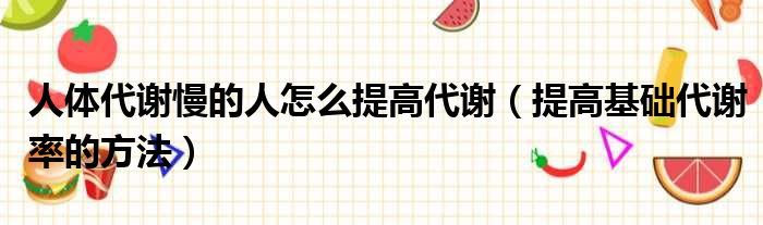 人体代谢慢的人怎么提高代谢(提高基础代谢率的方法)