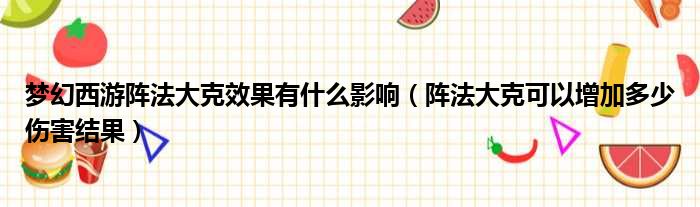 梦幻西游阵法大克效果有什么影响(阵法大克可以增加多少伤害结果)