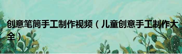导读 大家好,今天小六子来为大家解答以下的问题,关于创意笔筒手工制作视频,儿童创意手工制作大全这个很多人还不知道,现在让我们一起来看看吧...