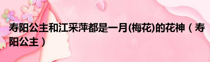大家好,今天小六子来为大家解答以下的问题,关于寿阳公主和江采萍都是一月(梅花)的花神,寿阳公主这个很多人还不知道,现在让我们一起来看看吧!