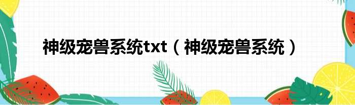 大家好,小房来为大家解答以上的问题。神级宠兽系统txt,神级宠兽系统这个很多人还不知道,现在让我们一起来看看吧!