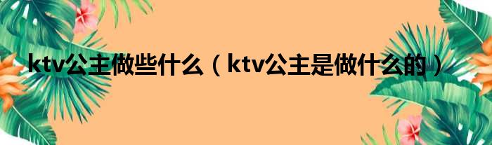 大家好,小房来为大家解答以上的问题。ktv公主做些什么,ktv公主是做什么的这个很多人还不知道,现在让我们一起来看看吧!