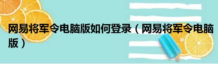 网易将军令电脑版如何登录(网易将军令电脑版)