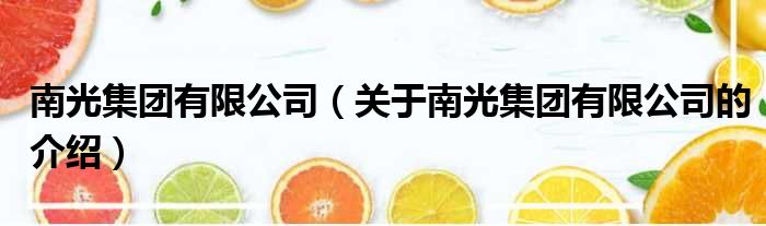 南光集团有限公司(关于南光集团有限公司的介绍)