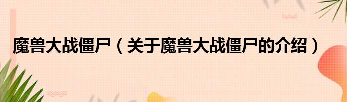 魔兽大战僵尸(关于魔兽大战僵尸的介绍)