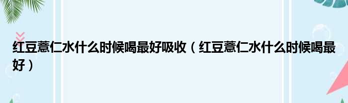 红豆薏仁水什么时候喝最好吸收(红豆薏仁水什么时候喝最好)