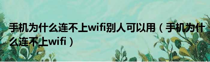 手机为什么连不上wifi别人可以用(手机为什么连不上wifi)