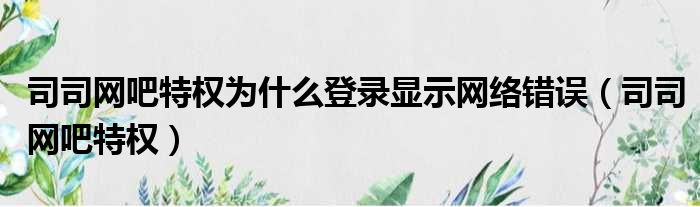 司司网吧特权为什么登录显示网络错误(司司网吧特权)