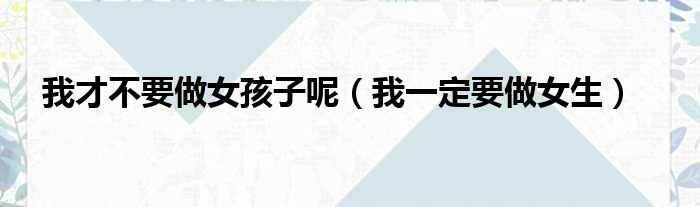 大家好,小房来为大家解答以上的问题。我才不要做女孩子呢,我一定要做女生这个很多人还不知道,现在让我们一起来看看吧!