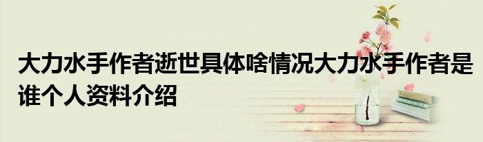 导读 大家好我是51房产网的小编杨小洋文文,现在我为大家解决以上大力水手作者逝世具体啥情况大力水手作者是谁个人资料介绍的问题 1、据外媒报道