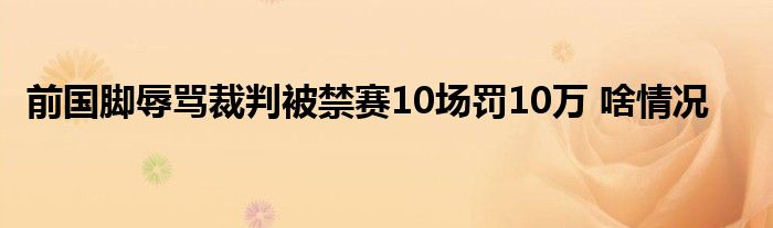 1、前国脚辱骂裁判被禁赛10场罚10万