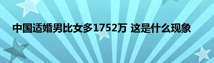 导读 大家好我是51房产网的小编杨小洋文文,现在我为大家解决以上中国适婚男比女多1752万 这是什么现象的问题 1、中国适婚男比女多1752万2、〖