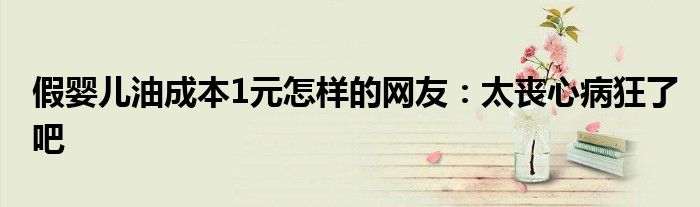 大家好我是51房产网的小编杨小洋文文,现在我为大家解决以上假婴儿油成本1元怎样的网友:太丧心病狂了吧的问题.