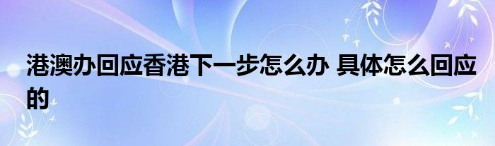 港澳办回应香港下一步怎么办 具体怎么回应的