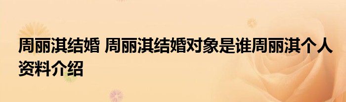 周丽淇结婚 周丽淇结婚对象是谁周丽淇个人资料介绍