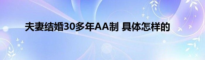大家好.大学教育网小编肥肥为大家解决以上夫妻结婚30多年AA制 具体怎样的的问题.