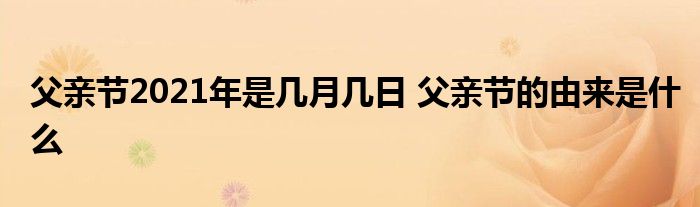 1、父亲节即将来临,很多小伙伴都知道跟母亲节一样是在周日,但却记不起是哪一天。也有小伙伴看了看钱包计划着送什么大礼。父亲节和母亲节都是儿女们应该关注的日子,以下将介绍父亲节有关内容:父亲节2021年是几月几日父亲节的由来是什么?
