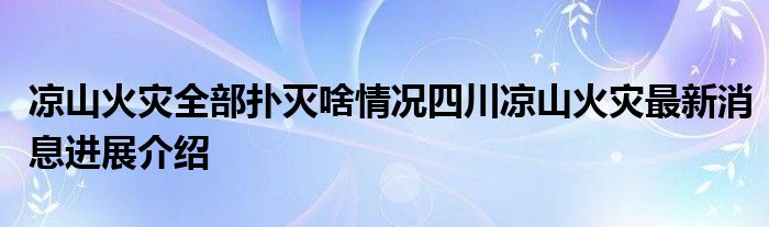 凉山火灾全部扑灭啥情况四川凉山火灾最新消息进展介绍