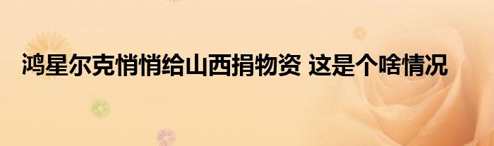 鸿星尔克悄悄给山西捐物资 这是个啥情况