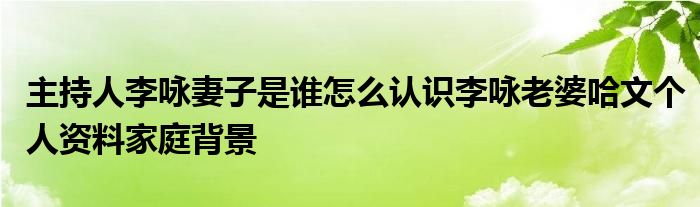 主持人李咏妻子是谁怎么认识李咏老婆哈文个人资料家庭背景