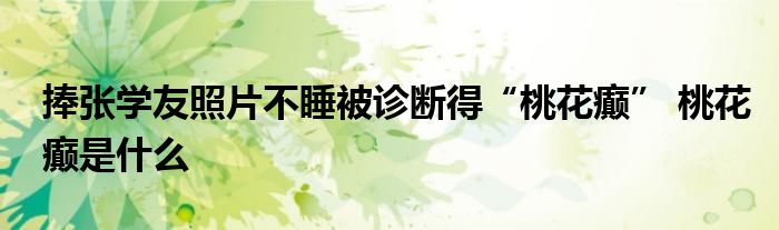 大家好.大学教育网小编肥肥为大家解决以上捧张学友照片不睡被诊断得“桃花癫” 桃花癫是什么的问题.