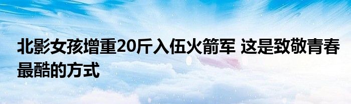导读 大家好 大学教育网小编肥肥为大家解决以上北影女孩增重20斤入伍火箭军 这是致敬青春最酷的方式的问题 1、 北影女孩增重20斤入伍火箭军 中