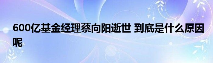 600亿基金经理蔡向阳逝世 到底是什么原因呢