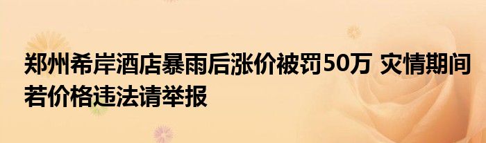 郑州希岸酒店暴雨后涨价被罚50万 灾情期间若价格违法请举报