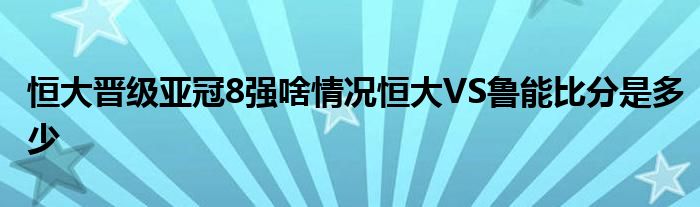 恒大晋级亚冠8强啥情况恒大VS鲁能比分是多少