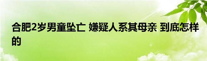 合肥2岁男童坠亡 嫌疑人系其母亲 到底怎样的
