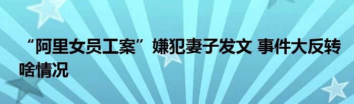 “阿里女员工案”嫌犯妻子发文 事件大反转啥情况
