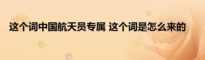 大家好.我是环球知识小编洋葱为大家解决以上这个词中国航天员专属 这个词是怎么来的的问题.