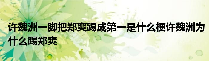 许魏洲一脚把郑爽踢成第一是什么梗许魏洲为什么踢郑爽