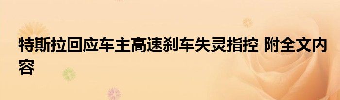 导读 大家好 我是环球知识小编洋葱为大家解决以上特斯拉回应车主高速刹车失灵指控 附全文内容的问题 1、【 特斯拉回应车主高速刹车失灵指控 】