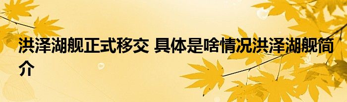 大家好.我是环球知识小编洋葱为大家解决以上洪泽湖舰正式移交 具体是啥情况洪泽湖舰简介的问题.