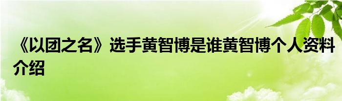 1、《以团之名》选手黄智博是谁?黄智博个人资料介绍