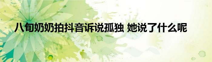大家好.我是环球知识小编洋葱为大家解决以上八旬奶奶拍抖音诉说孤独 她说了什么呢的问题.