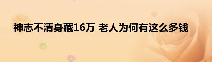 大家好.我是环球知识小编洋葱为大家解决以上神志不清身藏16万 老人为何有这么多钱的问题.