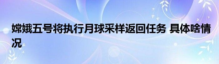 嫦娥五号将执行月球采样返回任务 具体啥情况