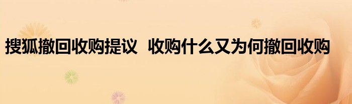 大家好.我是环球知识小编洋葱为大家解决以上搜狐撤回收购提议 收购什么又为何撤回收购的问题.