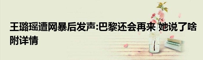 王璐瑶遭网暴后发声:巴黎还会再来 她说了啥附详情