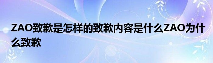大家好.我是环球知识小编洋葱为大家解决以上ZAO致歉是怎样的致歉内容是什么ZAO为什么致歉的问题.