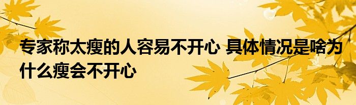 专家称太瘦的人容易不开心 具体情况是啥为什么瘦会不开心