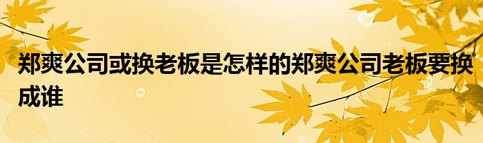 郑爽公司或换老板是怎样的郑爽公司老板要换成谁