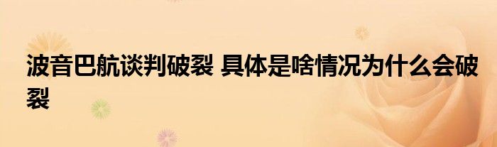 波音巴航谈判破裂 具体是啥情况为什么会破裂