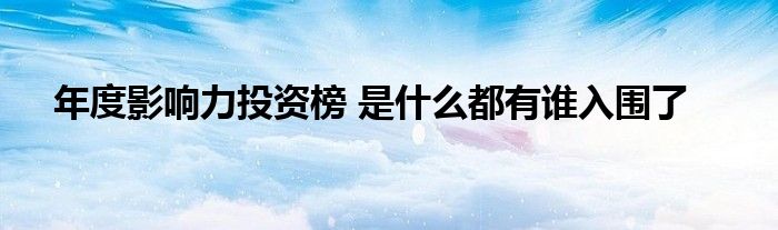 大家好.我是环球知识小编洋葱为大家解决以上年度影响力投资榜 是什么都有谁入围了的问题.
