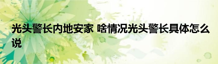 光头警长内地安家 啥情况光头警长具体怎么说