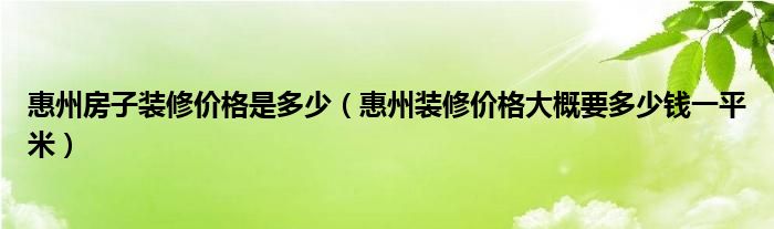 导读 大家好,精选小编来为大家解答以上的问题。惠州房子装修价格是多少,惠州装修价格大概要多少钱一平米很多人还不知道,现在让我们一起来看看