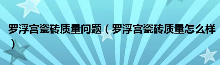 罗浮宫瓷砖质量问题(罗浮宫瓷砖质量怎么样)